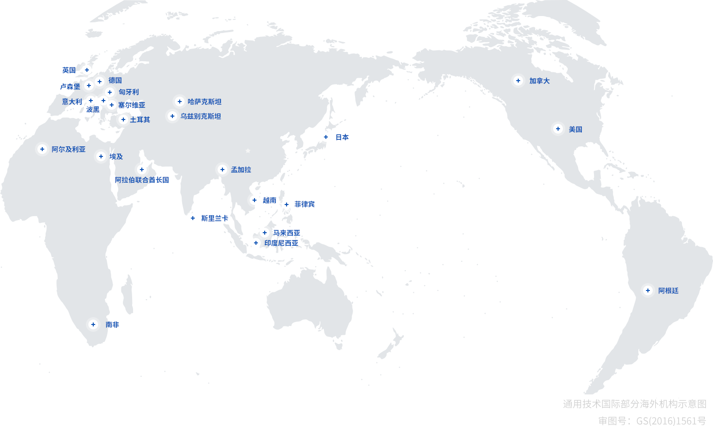 國際通用 通用技術國際致力于服務全球市場,在世界范圍內廣泛尋求合作,構建了覆蓋面廣、反應迅速的國際市場經營網絡,公司業務遍布五大洲的100多個國家和地區。